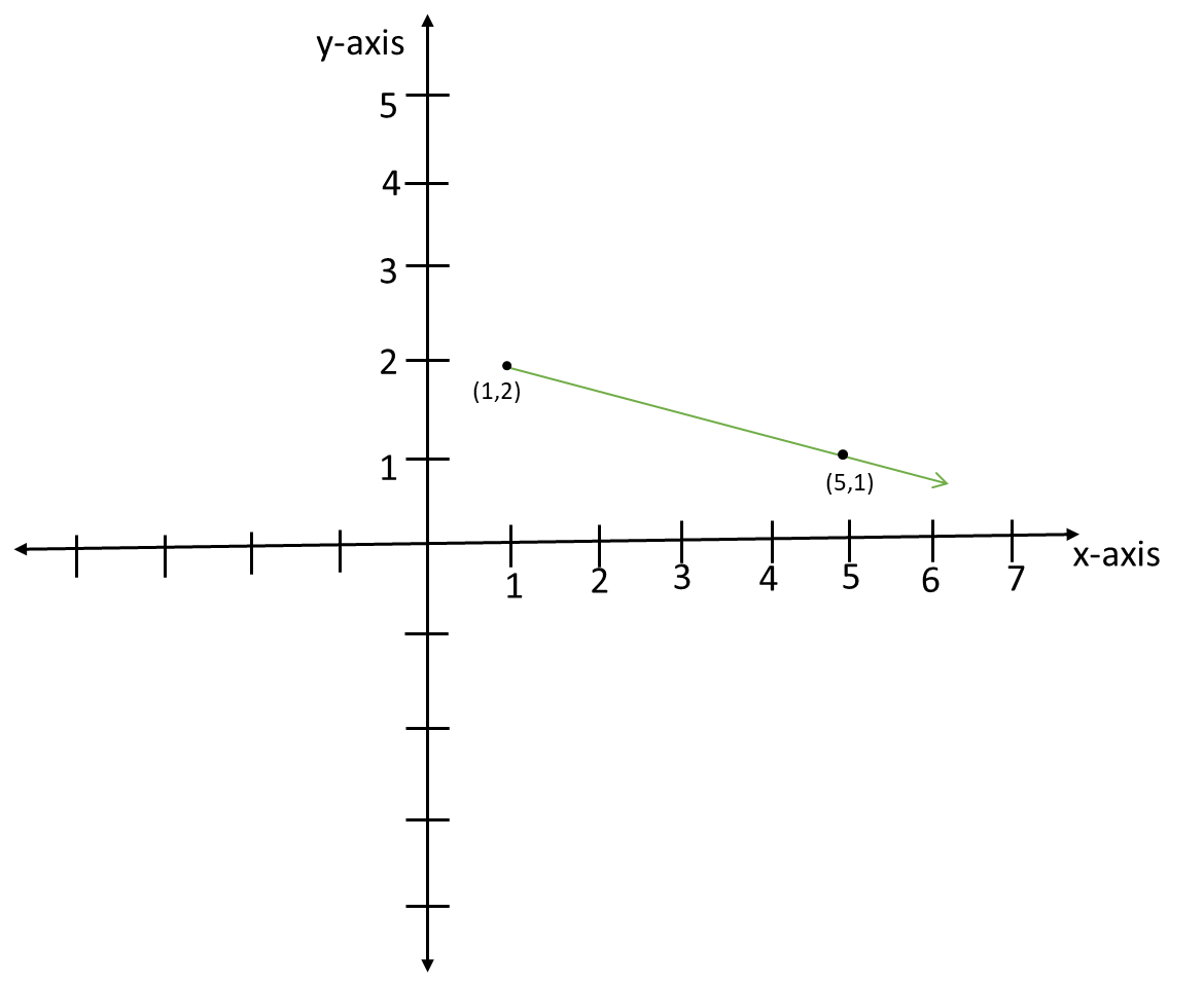 b. We notice that the change towards the y-direction (4 positive points) is greater than the change in the x-direction (1 negative step), therefore, the slope when plotted on a graph would be gentle as shown in the figure.