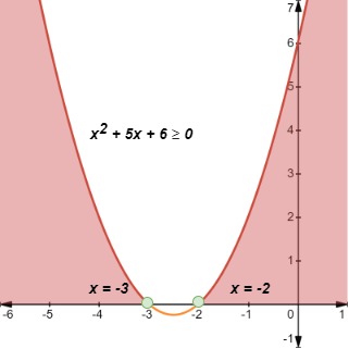 - For ≤, include the x-intercepts in the solution. This is indicated by closed circles (as seen in the graph)