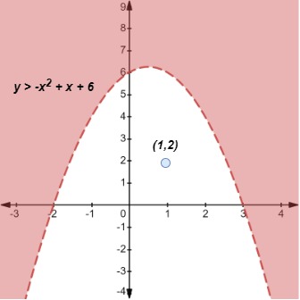 Step 2: Let us now test a point inside the parabola, say (1, 2). Plugging x = 1 and y = 2 into our quadratic inequality, we find that
