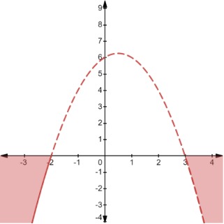 - For inequalities < or >, the parabola is a dashed line. This shows that the points on the parabola are not solutions.