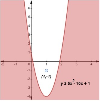 Step 2: Let us now check a point inside the parabola, say (1, –1). Plugging x = 1 and y = –1 into out inequality, we find that