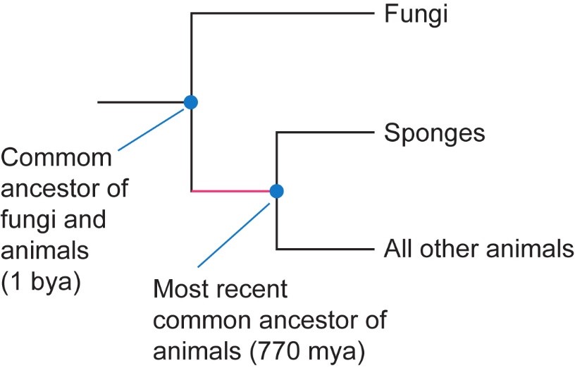 Explain what is represented by the red-colored portion of the branch leading to animals. (See Figure 26.5, 鈥淰isualizing Phylogenetic Relationships,鈥 to review phylogenetic tree diagrams.)