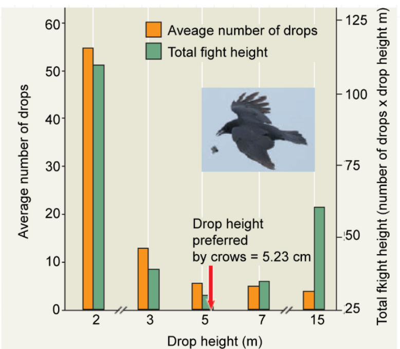 Compare the drop height preferred by crows with the graph of total flight height for the platform drops. Are the data consistent with the hypothesis of optimal foraging? Explain.