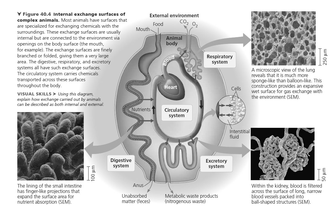 Consider the idealized animal in Figure 40.4. At which sites must oxygen cross a plasma membrane in traveling from the external environment to the cytoplasm of a body cell?