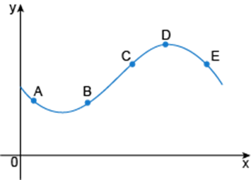 The graph of a function \(y = f\left( x \right)\) is shown. At which point(s) are the following true?
