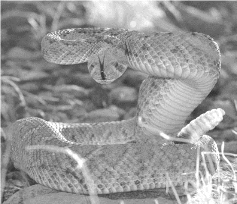 The rattlesnake alerts enemies to its presence with a rattle—a