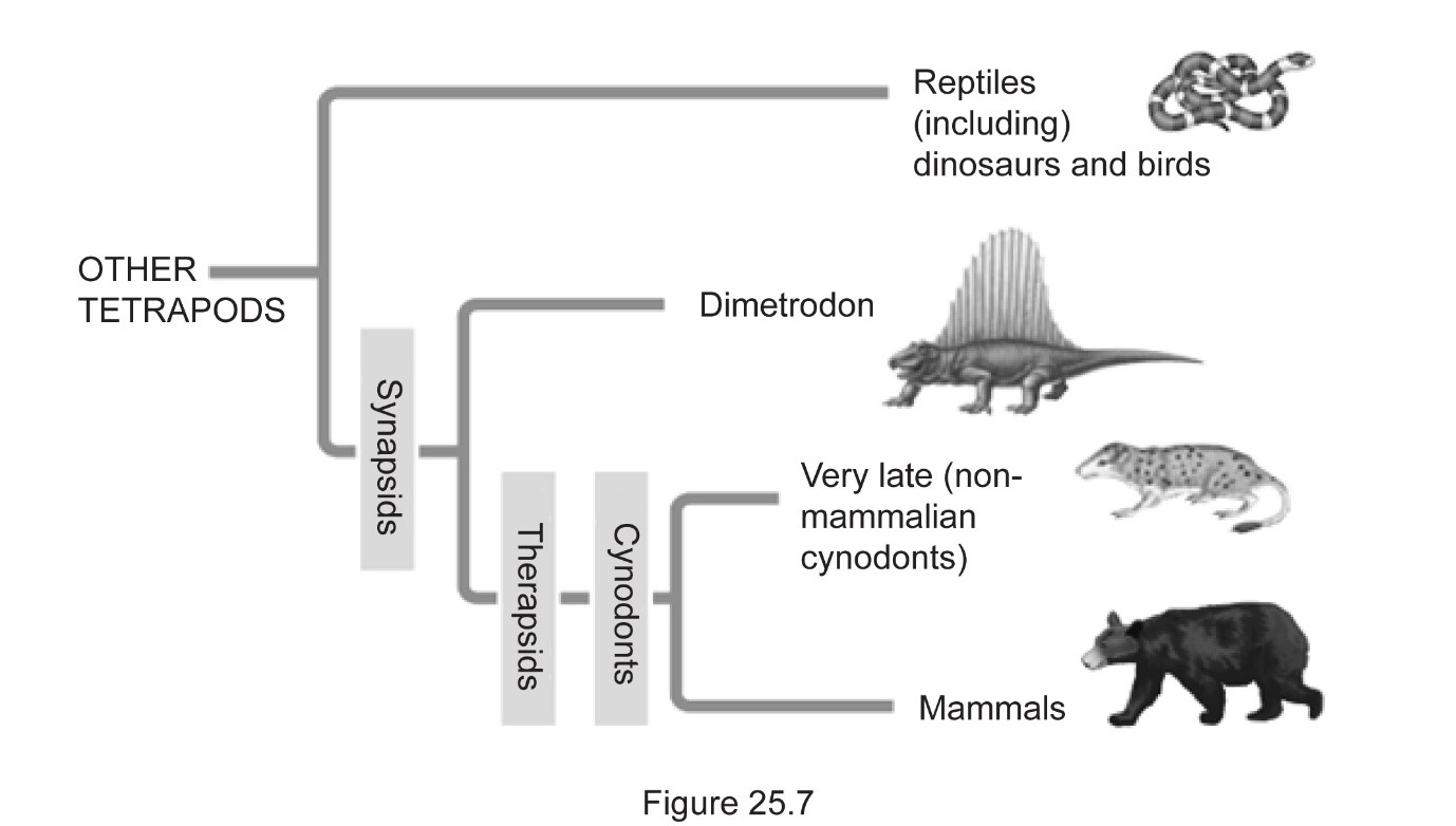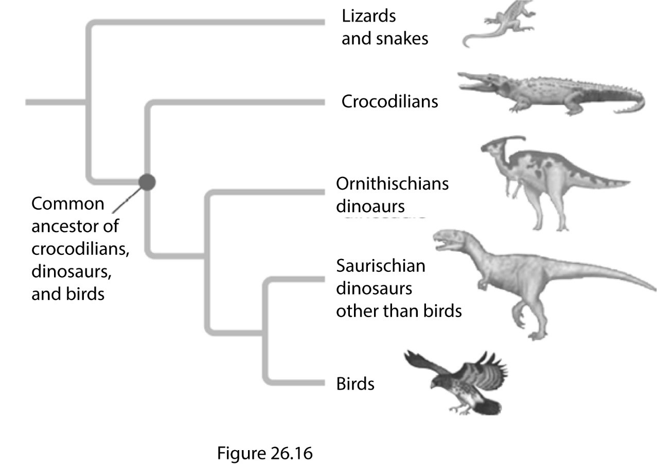 Draw a phylogenetic tree that includes the relationships from Figure 25.7 and Figure 26.16. Traditionally, all the taxa shown besides birds and mammals were classified as reptiles. Would the cladistic approach support that classification? Explain.