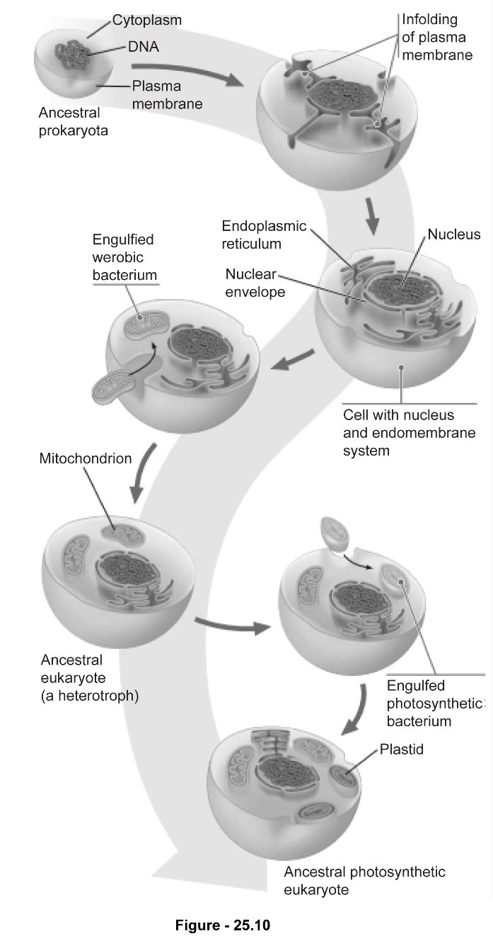 Explain how the origin of eukaryotes is thought to have represented a fusion of organisms, leading to extensive horizontal gene transfer. (See Figure 25.10.)
