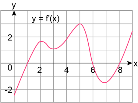 The graph of the derivative \(f'\) of a continuous function \(f\) is shown