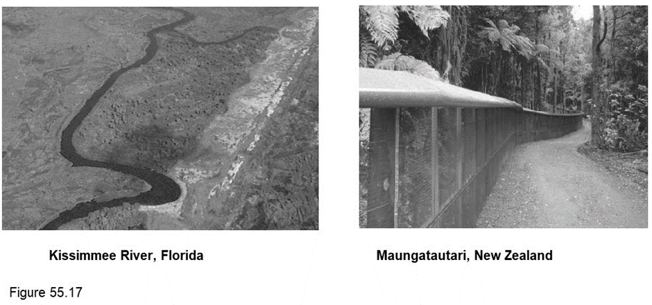 In what way is the Kissimmee River project a more complete ecological restoration than the Maungatautari project (see Figure 55.17)?