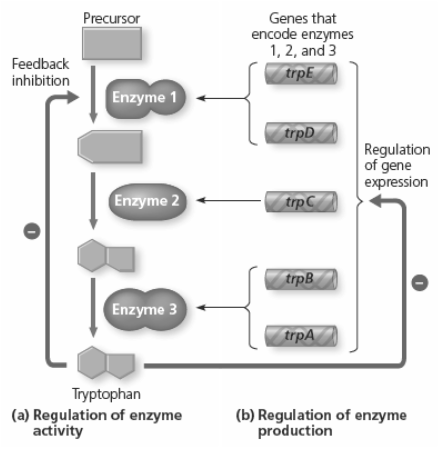 In a short essay (100-150words), discuss how the processes shown in Figure 18.2 are examples of feedback mechanisms regulating biological systems in bacterial cells.