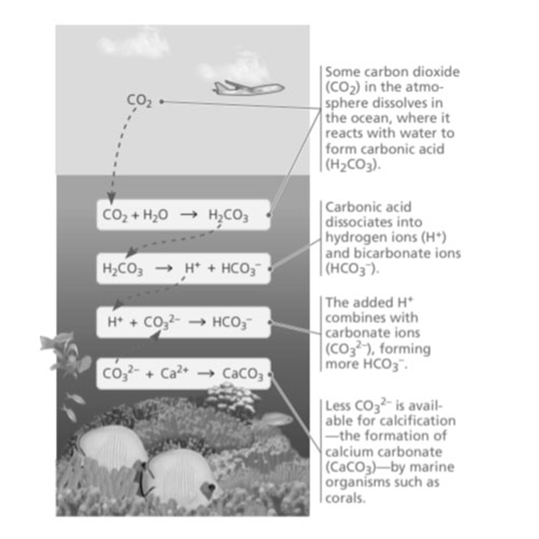 (a) Referring to the equations in Figure 3.12, determine which step of the process is measured in this experiment. (b) Are the results of this experiment consistent with the hypothesis that increased atmospheric [CO2] will slow the growth of coral reefs? Why or why not?