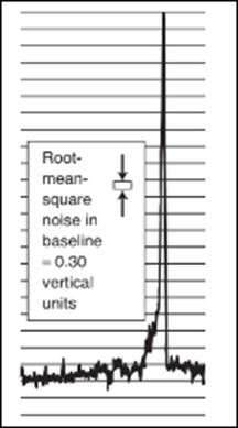 (a) The atomic absorption signal shown here was obtained within a graphite furnace. The root-mean-square noise in the baseline, measured by the instrument's computer, is s=0.30 vertical units, where each horizontal line on the chart is 1 vertical