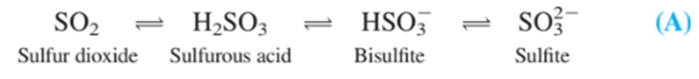 Coulometric titration of sulfite in wine. Sulfur dioxide is added to many foods as a preservative. In aqueous solution, the following species are in equilibrium: