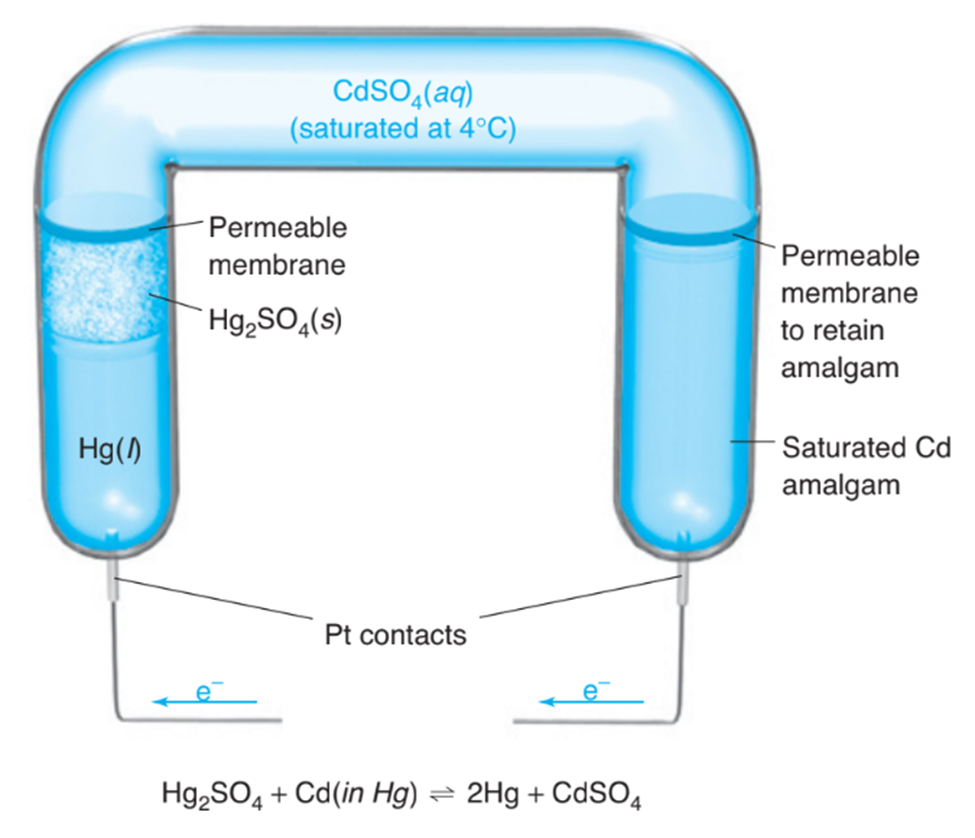 The Weston cell is a stable voltage standard formerly used in potentiometers. (The potentiometer compares an unknown voltage with that of the standard. In contrast with the conditions of this problem, very little current may be drawn from the cell if it is to be a voltage standard.)