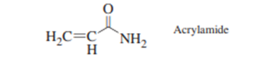 In 2002, workers at the Swedish National Food Administration discovered that heated, carbohydrate-rich foods, such as french fries, potato chips, and bread, contain alarming levels \((0.1to4\mu {\rm{g}}/{\rm{g}})\) of acrylamide, a known carcinogen\(36\).