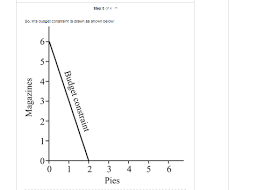 Draw Marie’s budget constraint with pies on the horizontal axis and magazines on the vertical axis. What is the slope of the budget constraint?