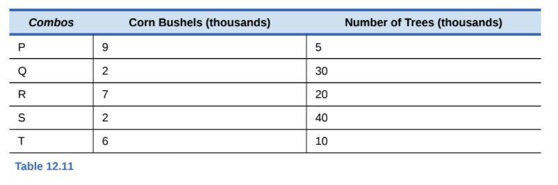 to clear some of Sherwood’s forest and grow corn, but obtaining this additional economic output will have an environmental cost from reducing the number of trees. Table 12.11 shows possible combinations of economic output and environmental protection.