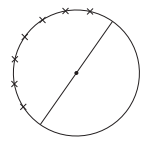 Suppose that n points are independently chosen at random on the circumference of a circle, and we want the probability that they all lie in some semicircle. That is, we want the probability that there is a line passing through the center of the circle such that all the points are on one side of that line, as shown in the following diagram: