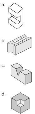 Match the orthographic projects with their isometric drawings. If there is no isometric drawing, then make one.