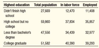 In the language of government statistics, you are 鈥渋n the labor force鈥 if you are available for work and either working or actively seeking work. The unemployment rate is the proportion of the labor force (not of the entire population) who are unemployed. Here are data from the Current Population Survey for the civilian population aged years and over in a recent year. The table entries are counted by thousands of people.