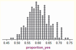 Doing homework A school newspaper article claims that of the students at a large high school did all their assigned homework last week. Some skeptical AP Statistics students want to investigate whether this claim is true, so they choose an SRS of students from the school to interview. What values of the sample proportion pˆ would be consistent with the claim that the population proportion of students who completed all their homework is ? To find out, we used Fathom software to simulate choosing SRSs of size students from a population in which . The figure below is a dotplot of the sample proportion of students who did all their homework.