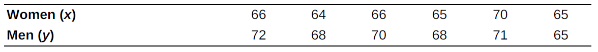 women. She measures herself, her dormitory roommate, and the women in the adjoining dorm rooms. Then she measures the next man each woman dates. Here are the data (heights in inches):