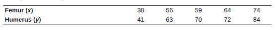 this relationship would suggest a different species. Here are data on the lengths (in centimeters) of the femur (a leg bone) and the humerus (a bone in the upper arm) for the five specimens that preserve both bones: