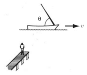 A sailboat is manufactured so that the mast leans at an angle with respect to the deck. An observer standing on a dock sees the boat go by at speed v (Fig. 12.14). What angle does this observer say the mast makes?