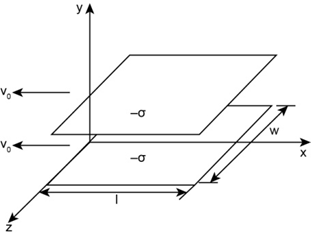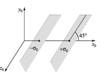 A parallel-plate capacitor, at rest in and tilted at a angle to the axis, carries charge densities on the two plates (Fig. 12.41). System is moving to the right at speed relative to .