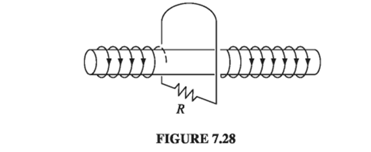 A long solenoid of radius a, carrying n turns per unit length, is looped by a wire with resistance R, as shown in Fig. 7.28.