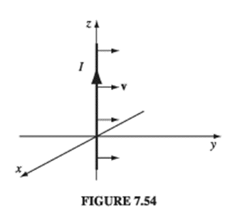 Question: An infinite wire carrying a constant current in the direction is moving in the direction at a constant speed . Find the electric field, in the quasistatic approximation, at the instant the wire coincides with the axis (Fig. 7.54).
