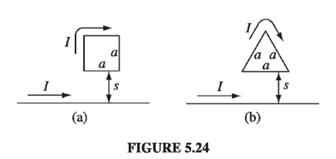 Question: (a) Find the force on a square loop placed as shown in Fig. 5.24(a), near an infinite straight wire. Both the loop and the wire carry a steady current I.