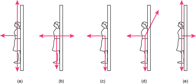 In a rotating vertical cylinder (Rotor-ride) a rider finds herself pressed with her back to the rotating wall. Which is the correct free-body diagram forher(Fig. 5鈥36)?
