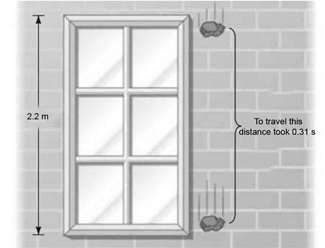 A falling stone takes 0.31 s to travel past a window that is 2.2 m tall (Fig. 2-41). From what height above the top of the window did the stone fall?