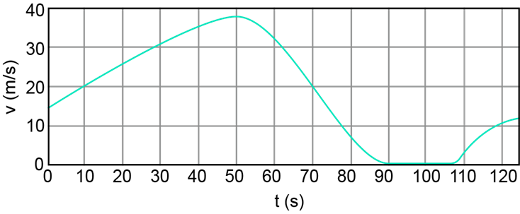 Figure 2-42 shows the velocity of a train as a function of time. (a) At what time was its velocity greatest? (b) During what periods, if any, was the velocity constant? (c) During what periods, if any, was the acceleration constant? (d) When was the magnitude of the acceleration greatest?