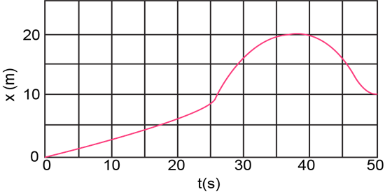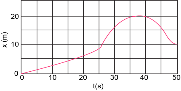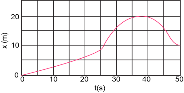 The position of a rabbit along a straight tunnel as a function of time is plotted in Fig. 2-44. What is its instantaneous velocity (a) at t = 10.0 s and (b) at t = 30.0 s? What is its average velocity (c) between t = 0 and t = 5.0 s, (d) between t = 25.0 s and t= 30.0 s, and (e) between t = 40.0 s and t = 50.0 s.