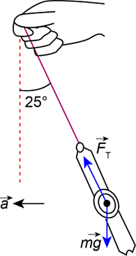 Francesca dangles her watch from a thin piece of string while the jetliner she is in accelerates for takeoff, which takes about 16 s. Estimate the takeoff speed of the aircraft if the string makes an angle ofwith respect to the vertical, Fig. 4鈥64.