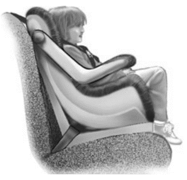 An 18-kg child is riding in a child-restraint chair, securely fastened to the seat of a car (Fig. 4鈥77). Assume the car has speed 45 km/h when it hits a tree and is brought to rest in 0.20 s. Assuming constant deceleration during the collision, estimate the net horizontal force F that the straps of the restraint chair exert on the child to hold her in the chair.