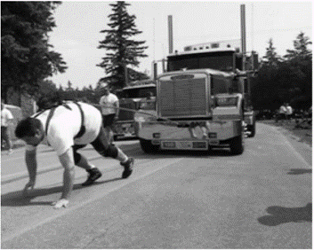 (a) he is stronger than the truck.