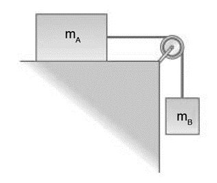 FIGURE 4-53 Problems 32 and 33. Mass mA rests on a smooth horizontal surface; mB hangs vertically.