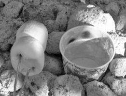 A paper cup placed among hot coals will burn if empty (note burn spots at top of cup in Fig. 14–14), but won’t burn if filled with water. Explain. Forget the marshmallows.