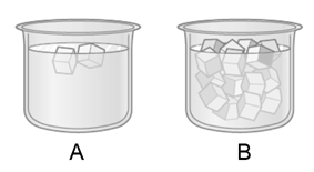 Both beakers A and B in Fig. 14–15 contain a mixture of ice and water at equilibrium. Which beaker is the coldest, or are they equal in temperature?