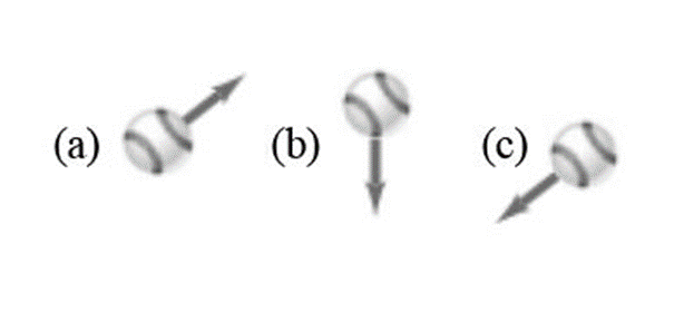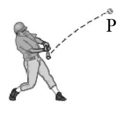 A baseball player hits a ball that soars high into the air. After the ball has left the bat, and while it is traveling upward (at point P in Fig. 3–31), what is the direction of acceleration? Ignore the air resistance.