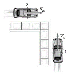 Two cars approach a street corner at right angles to each other (Fig. 3-47). Car 1 travels at a speedrelative to the earth, and car 2 at. What is the relative velocity of car 1 as seen by car 2? What is the velocity of car 2 relative to car 1?