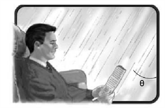 Raindrops make an anglewith the vertical when viewed through a moving train window (Fig. 3–52). If the speed of the train is, what is the speed of the raindrops in the reference frame of the Earth in which they are assumed to fall vertically?