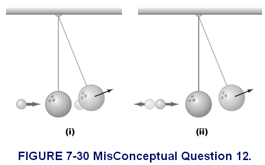 (i) A 200-gram putty ball moving\({\bf{5}}{\bf{.0 m/s}}\)hits the bowling ball and sticks to it, causing the bowling ball to swing up;