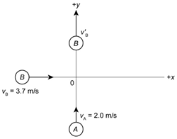 (a) Taking the x axis to be the original direction of motion of ball A, write down the equations expressing the conservation of momentum for the components in the x and y directions separately.