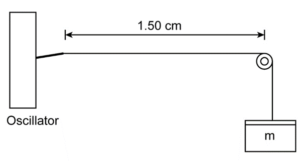 In Problem 55 (Fig. 11–55), the length l of the string may be adjusted by moving the pulley. If the hanging mass m is fixed at 0.080 kg, how many different standing wave patterns may be achieved by varying l between 10 cm and 1.5 m?