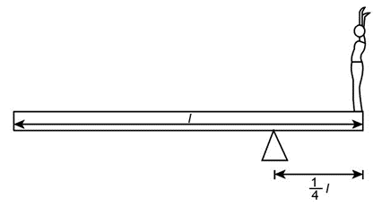 A 60-kg woman stands at the very end of a uniform board of length l, which is supported one-quarter of the way from one end and is balanced (Fig. 9鈥41). What is the mass of the board? (a) 15 kg (b) 20 kg (c) 30 kg (d) 60 kg (e) 120 kg